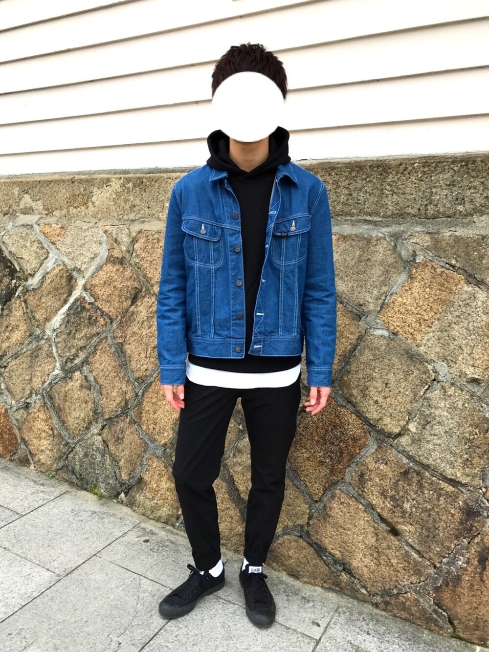 デニムジャケットとパーカーの定番コーデ✨ 今日もモノトーン+デニムの一色で揃えてみました✨ 細めのパンツでシルエット綺麗めに! もしよければ、いいね・セーブ・フォローの方、よろしくお願いします✨😊