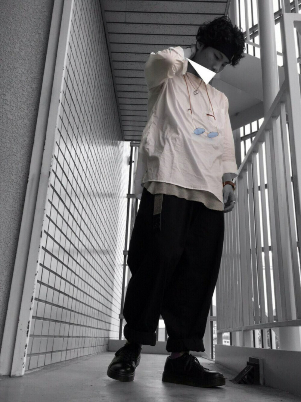 こんばんは。 hairband:banal chic bizarre tops:HARE bottoms:my beautiful land let shoes:Dr.Martens サスペンダー使わずに履いてみました わりと普通なワイドパンツ 後ろからのシルエットは おもしろいですね そういえばこのヘアバンドの商品ページに コーデ2つ載せてもらえたようです 良かったらご覧ください 今日はアコースティックライブ的なやつで 深夜2時から歌ってきます。 流行りの首痛い系男子 ではでは