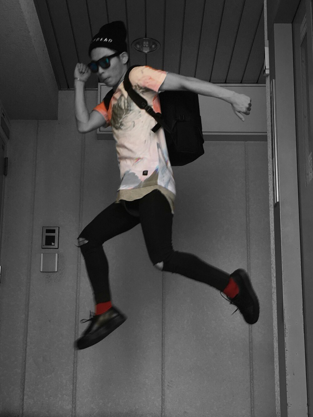 こんにちは。 nitcap:drop dead tops:drop dead belt:Y-3 bottoms:SUPERFINE shoes:DR.MARTENS いやー熱いです。 今日のライブは熱い 上がりすぎて飛びました 顔変。いつもだけど。 では がんばります