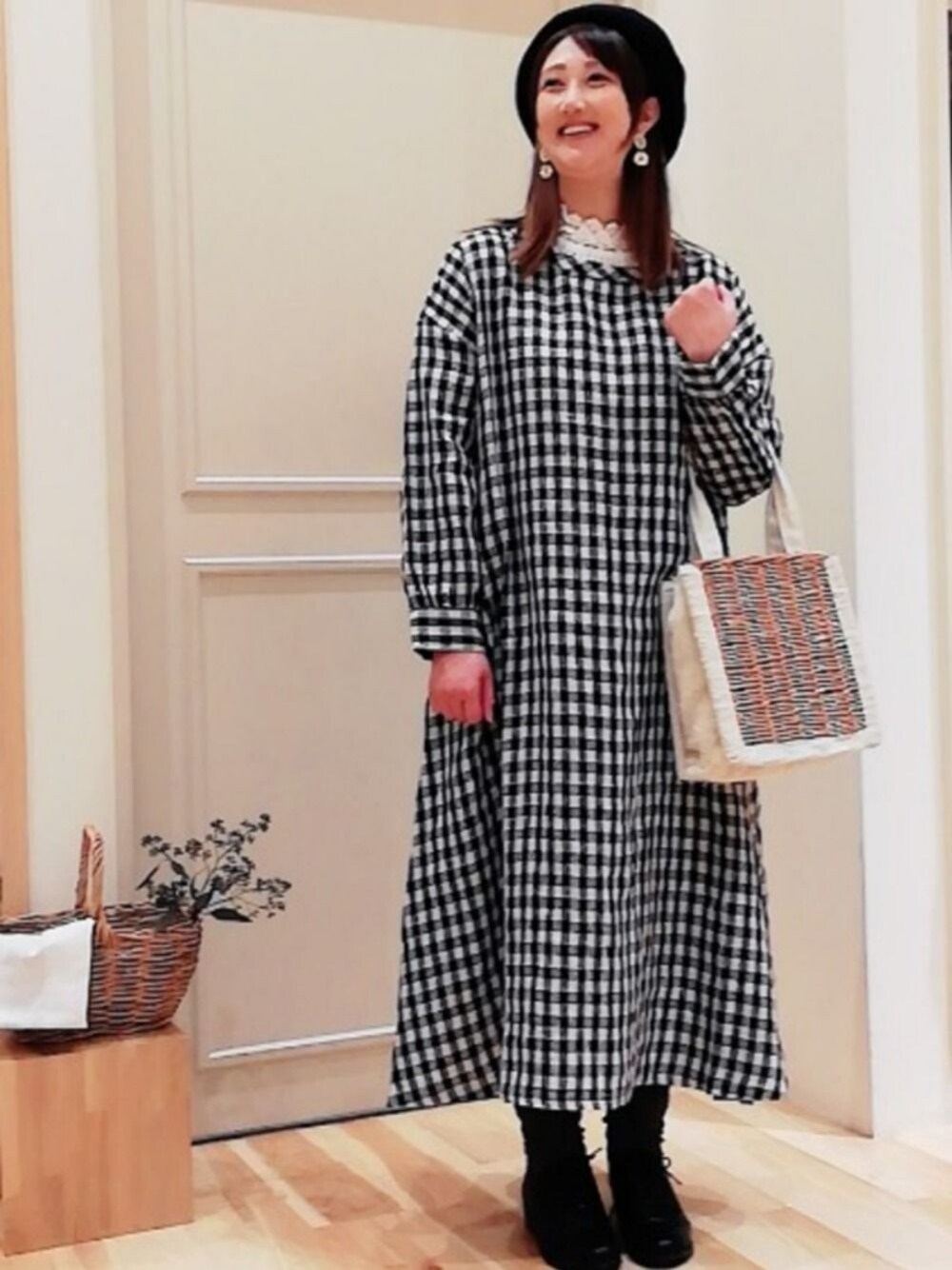 こんにちは(^^) ご覧頂きありがとうございます♪ * ワンピースのウエストの背面部分には、ドロストリボンを配しているので、絞る事でシルエットの変化も楽しめます◎