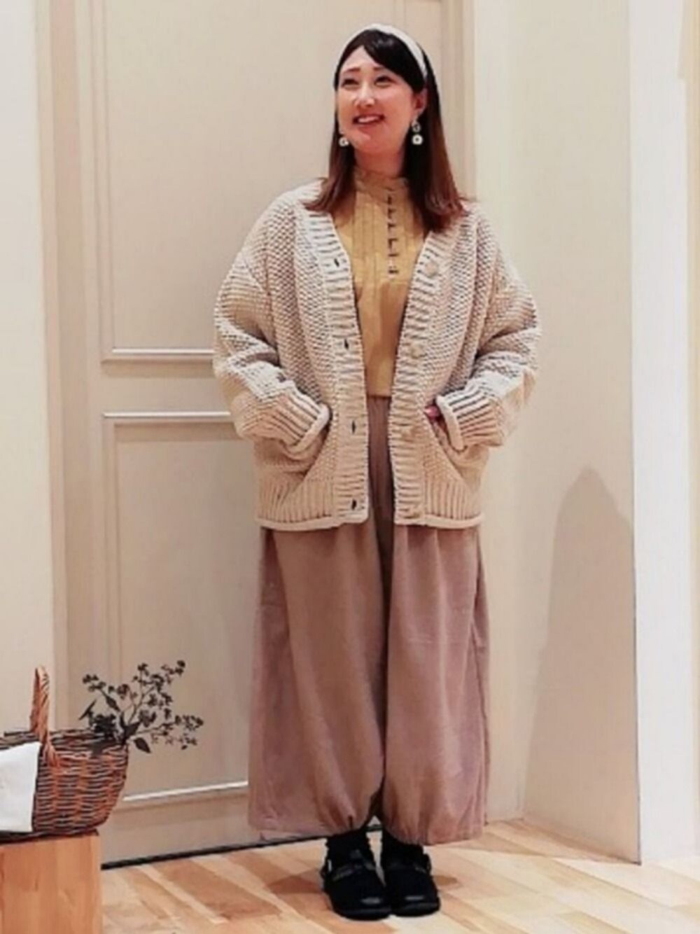 haruのニット/セーター「タック編みVネックカーディガン」を使ったコーディネート