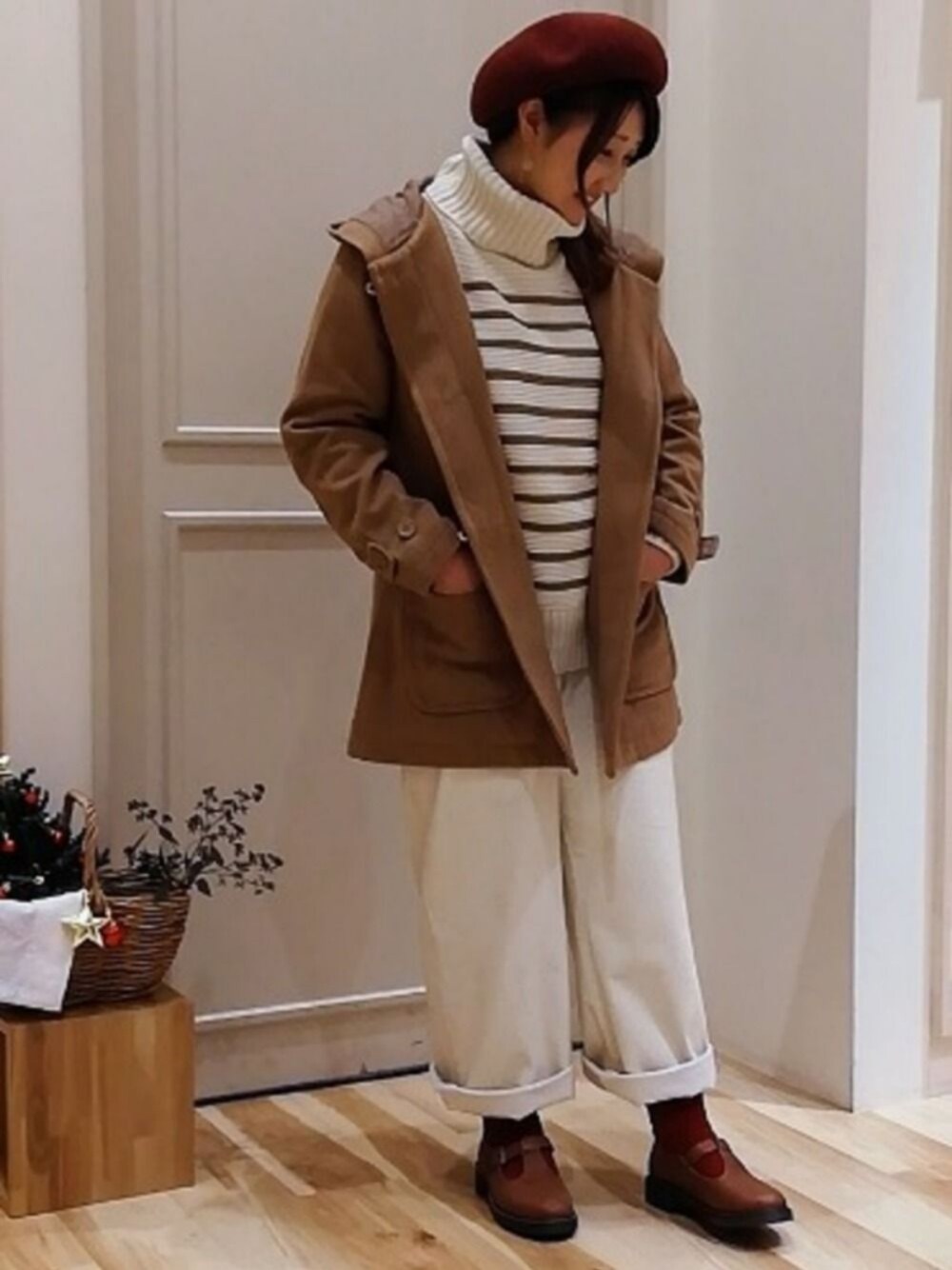 haruのニット/セーター「ボーダータートルネックニット」を使ったコーディネート