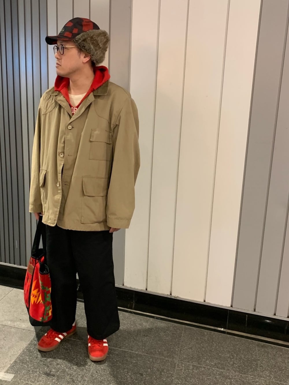 60s 筆記体 L.L.Bean ハンティングジャケット 赤を差し込んでいきました。 トートバッグとフライトキャップはペンドルトン