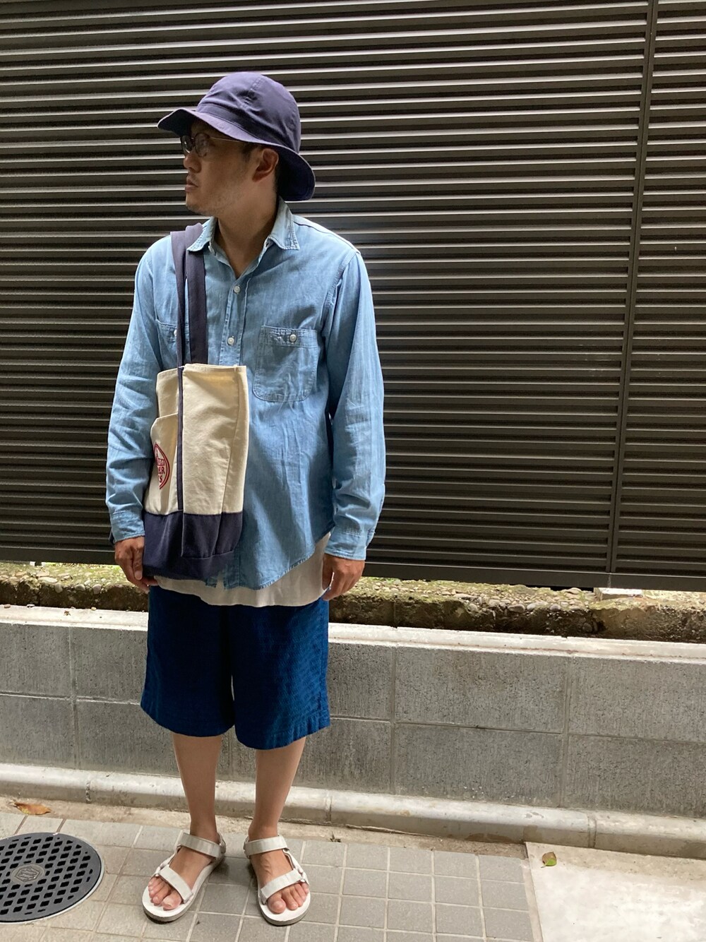 60s PENNEY'S BIGMAC シャンブレーシャツ ハーフパンツはVarde77 ネイビー×ホワイトコーデ