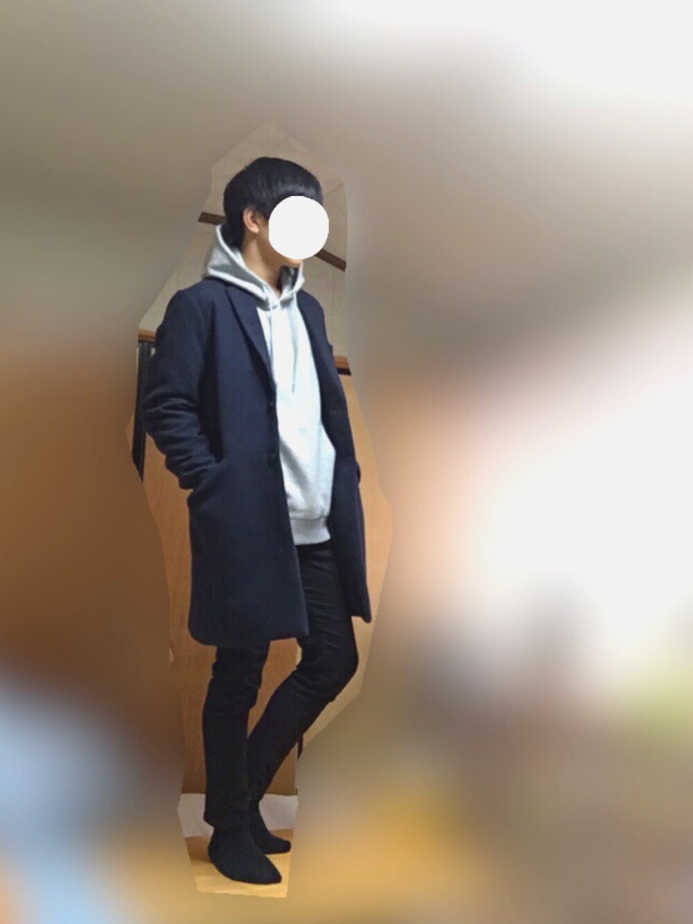 チェスターコート×パーカー 安定の組み合わせですね👍しかしカッコいい!! 何も履いてないけど、これでドクターマーチンとか履いたらモテるんだろうよ......笑笑