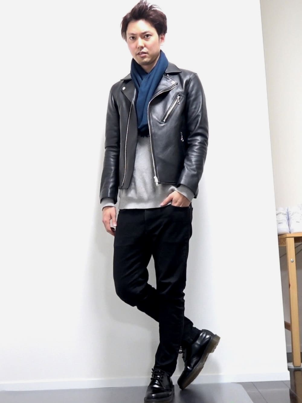 髪を短髪にしたので男らしいダブルのライダースを着ました。 ただ全身黒だと男っぽすぎるのでブルーの鮮やかなマフラーを着けました。 めでたし、めでたし💓 ぜひいいと思ったら【お気に入り】してね😄