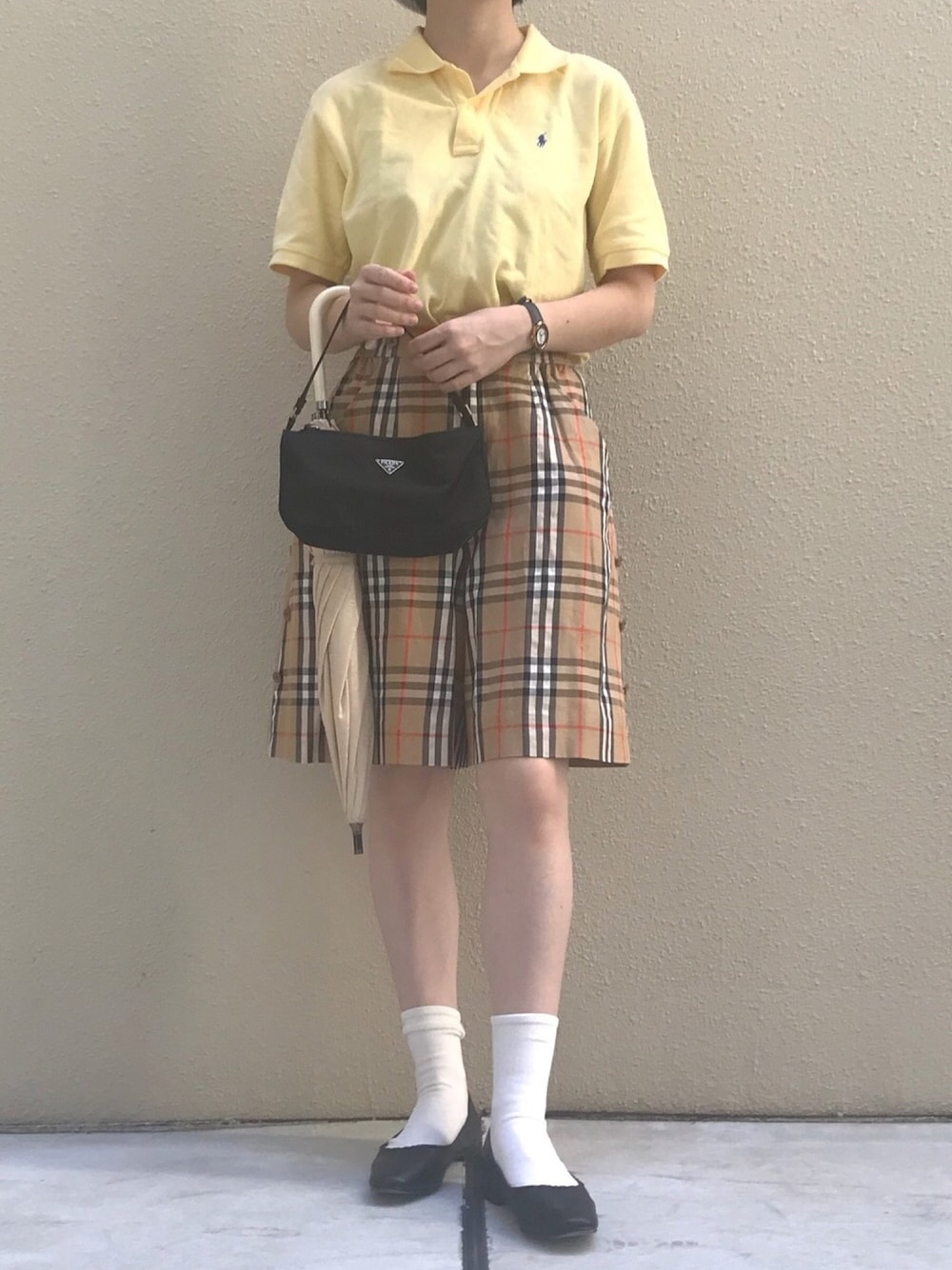 過去code☺︎ 今回のハイブラですが全て母のお下がり。。 ベージュとイエロー 似てないようで似てますね。 ワントーンっぽくまとめてみました。 黒のチェックが入ってるので小物は黒で。 キュロットは2WAYでベージュのスカートみたいにもなります