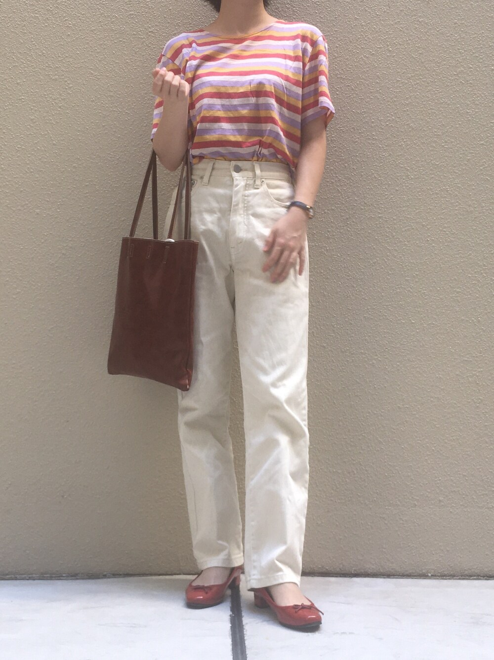 過去code☺︎ ボーダーの色の赤とパンプスを揃えました またこのパンプス🥵