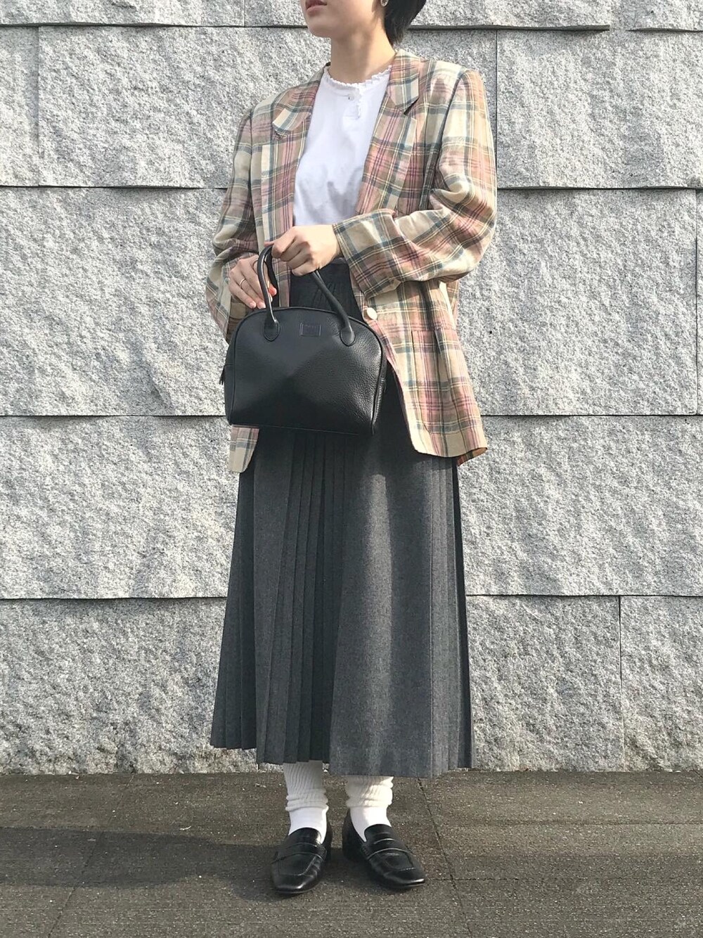美術館code 美術館はきれいめにきめたくて ジャケット羽織りました☺︎ 柄もしっかり入ってるジャケットなので トップスとスカートはシンプルにしました 実はくしゅくしゅ靴下で ちょっとだけ抜け感出してみたつもり にしても最近このバッグ使いすぎだな…🤤