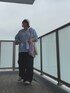 ストライプに惹かれて買った変形シャツ👔 スウェットパンツはイロチ買い ニット帽🤍は綿でサラッとかぶりやすい