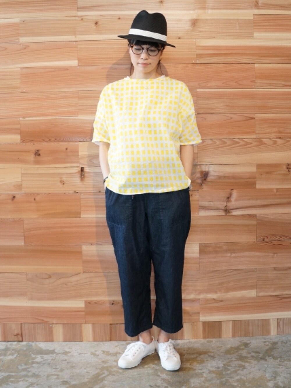 ティグルブロカンテのバディッグ染めのブラウス。 黄色の格子柄が可愛らしいです♡ かっこ良く合わしてみました^ ^