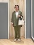堀川さんのノーカラージャケット「リネンタッチノーカラージャケット(セットアップ可)」を使ったコーディネート