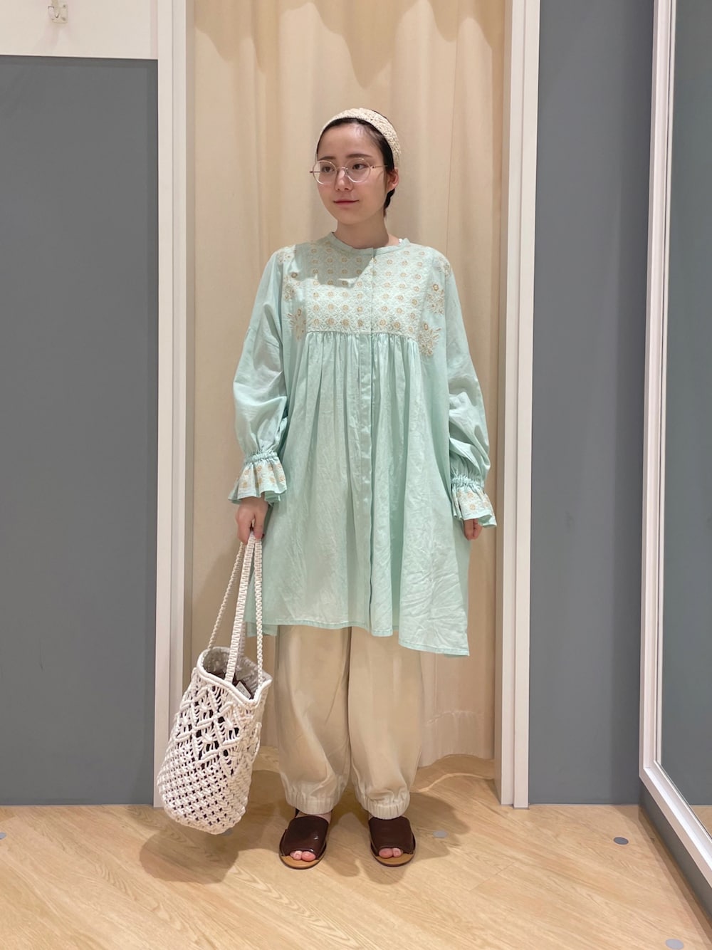 堀川さんのチュニック「刺繍チュニックワンピース」を使ったコーディネート