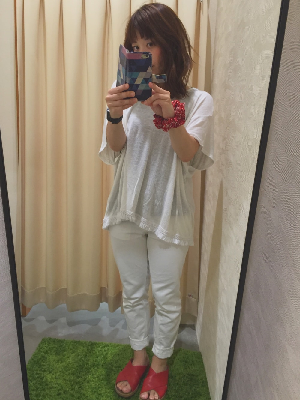 ひどい…全身GU。でもなんか着たい服がなかったのよね(/TДT)/あうぅ・・・・ とりあえず、赤で引き締めてみました!! このサンダル履きやすくて楽チン!