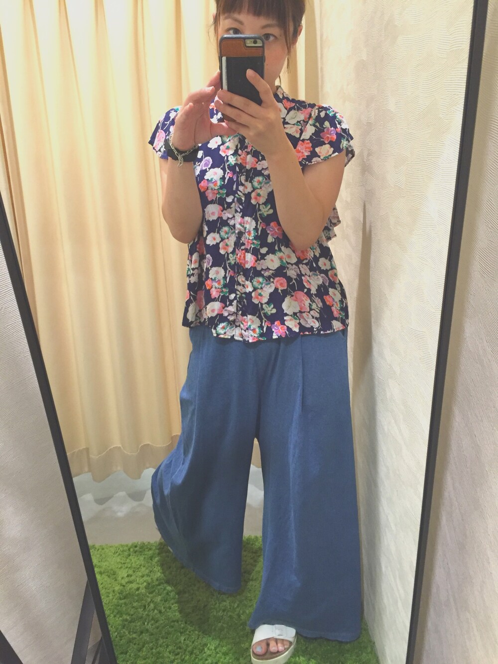 腕を出す限界のトップスです。 浴衣みたいな柄か…と迷ったけどやっぱり色合い可愛い♡少しレトロ感の色好きです!