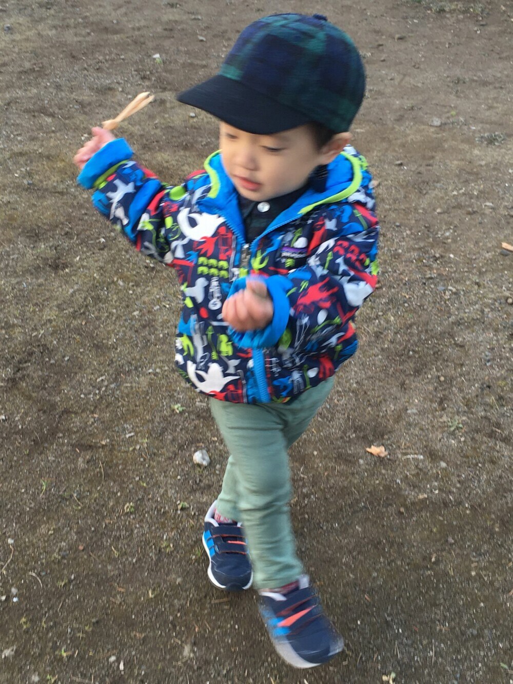 なんか舞ってる?! 葉っぱとか持ちたがります。