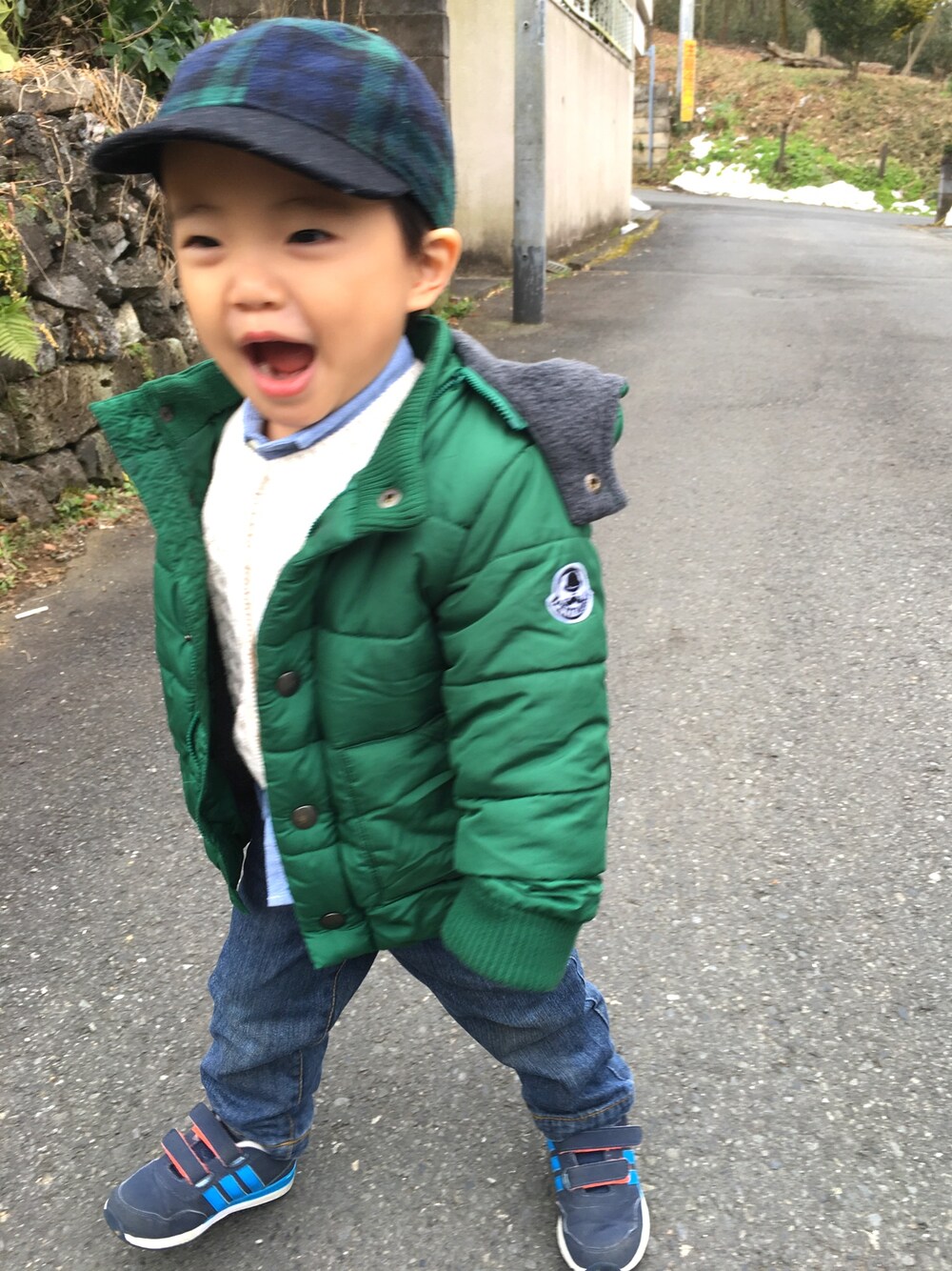 Ryoootanのブルゾン「ワンポイントワッペン付き袖リブ中綿ブルゾン」を使ったコーディネート