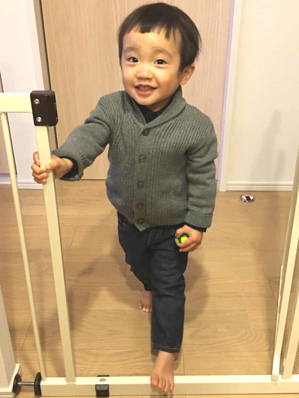最近、写真を全然撮らせてくれないから… 室内、しかも裸足でトータルコーディネートとは言えないですが。。。 良い表情だったので(笑)
