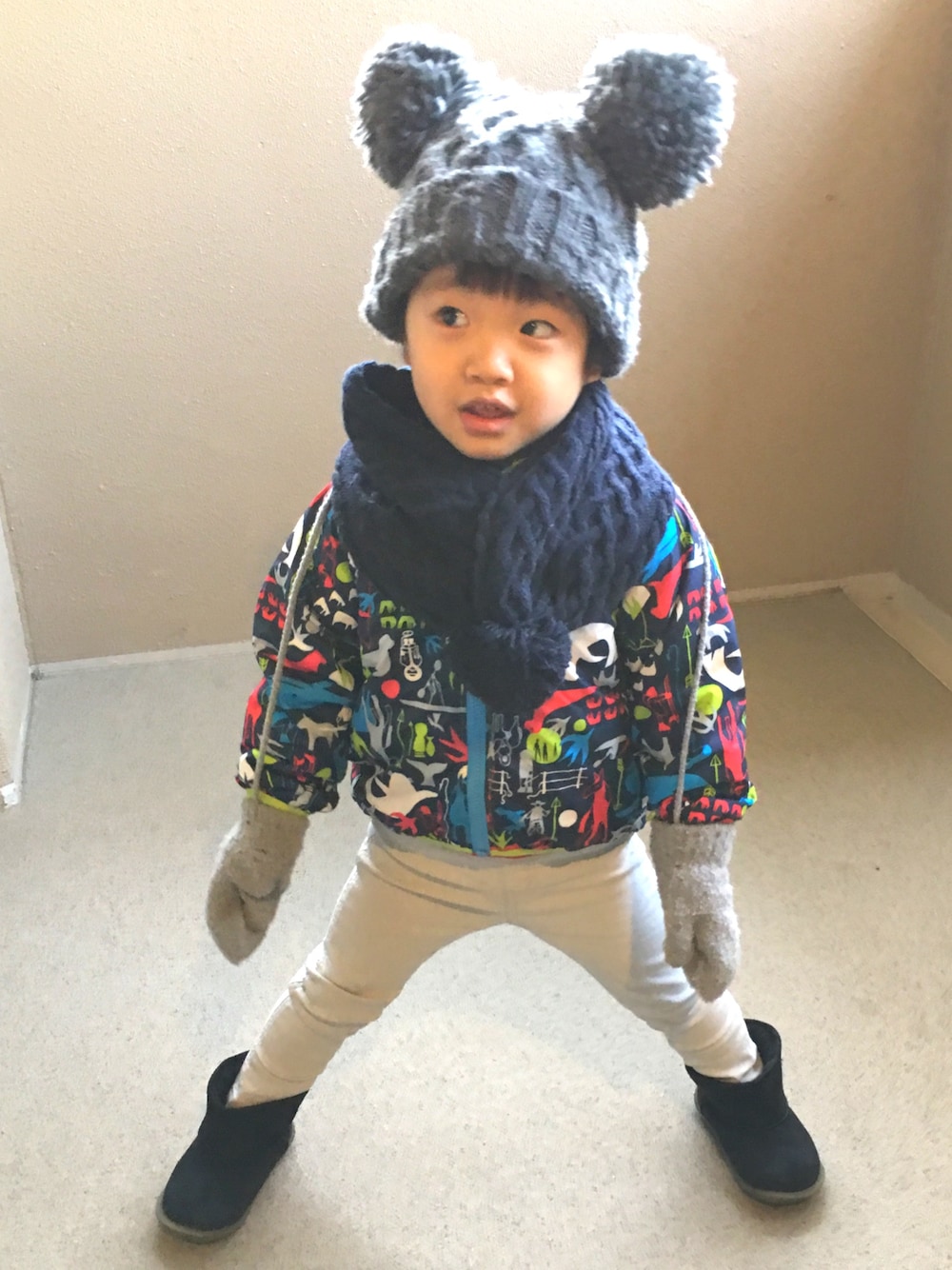 イルミネーション見にいくための防寒コーデ❤️ パンツは薄く見えるけど、裏起毛のあったかパンツ(^^) お尻のない息子にも着せやすいスキニーで重宝してます。 ミッキーニット帽は暗い中でもシルエットで発見しやすくて、なかなか便利(^^)