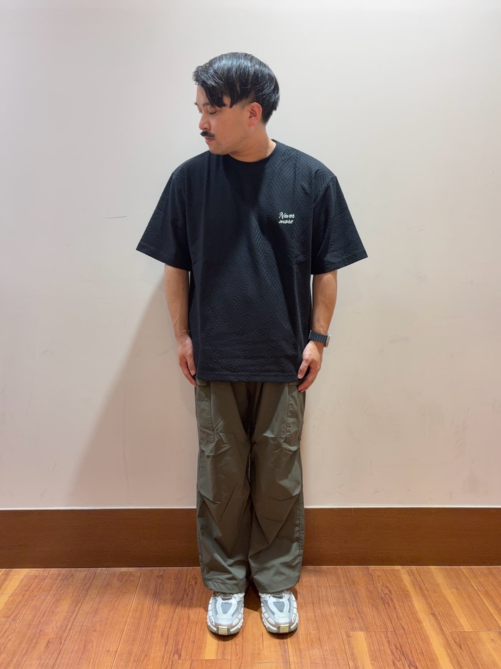 Tシャツはジャガード柄に加え、ワンポイントの刺繍が存在感溢れるデザインです。 パンツは大人気のカーゴパンツ。 夏にピッタリなサラッとした素材感に加え、裾のドローコードでシルエット調整していただけます。