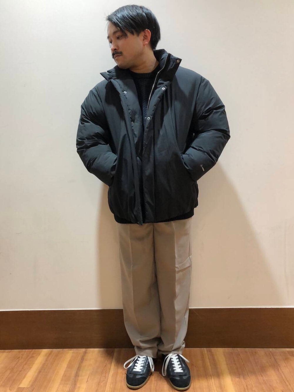 今回は中綿ブルゾンを使ったカジュアルコーディネートです。 アウターは、保温性の高さに加え、撥水加工が施されており、機能性が高いです。 ミニマルなデザインで、着回しにも優れています。 ニットは、昨シーズンも好評いただいたバーズアイの柄が目を惹き、1枚着はもちろん、インナーにもアクセントになります。 肉厚ながら肌触りが良く、着やすいのも嬉しいポイントです。 パンツは、テーパードシルエットが美しく、着回し抜群。 薄い裏起毛なので、ロングシーズンお召しいただけます。 参考にしていただけると幸いです。 ご覧いただきまして、ありがとうございます。