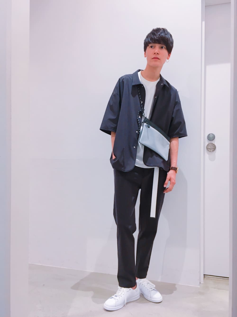 SUPERTHANKSセットアップコーデ⚫ モノトーンでまとめました‼️ サコッシュもSUPERTHANKSです😎 スニーカーでのコーデにしましたが革靴でもキマります👞👟