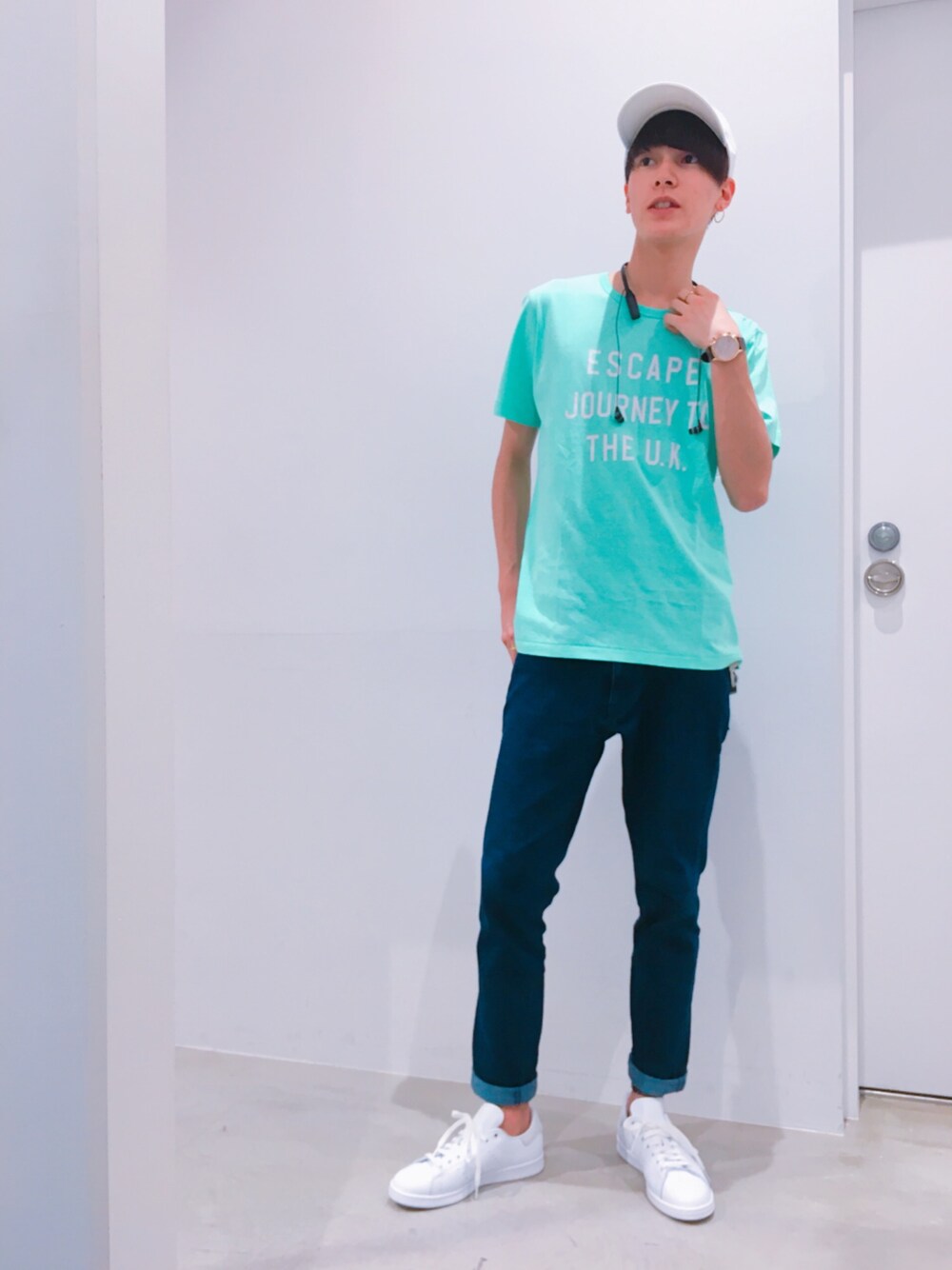 ミントのロゴTで爽やかさをUP‼️ サイズ感もピッタリですごく着やすいです😊 ホワイトのキャップで合わせましたがニット帽などでも合いそうです🧢