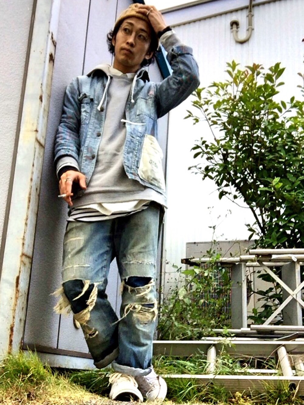今日はがっつり古着コーデ!! このカバーオールはエプロンつきで激かわ!! そしてこのクラッシュデニムは僕が小5のとき買って貰ってそこからひたすら履き込んでリペアしてを繰り返してるワンオーナーのガチ古着!!笑 あんまこんなコテコテの格好今は流行らないですが、僕はもともと古着好きなのでコレもたまらなく好きです☺️