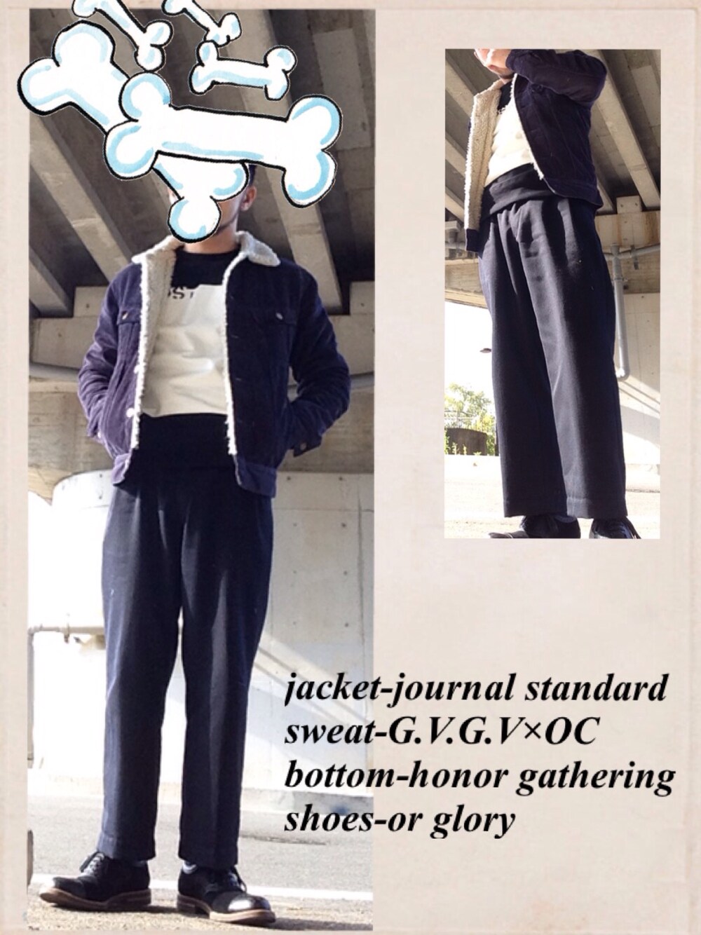 スウェットとワイドパンツでストリートっぽくしています。