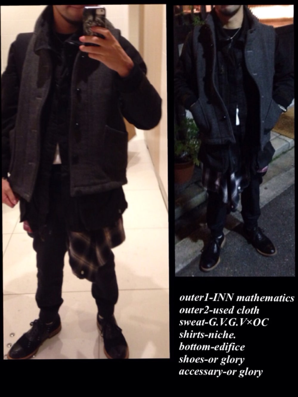 ウールベストとフィールドジャケットでアウトドア感を出しながら、ストリートっぽく黒できれいにまとめました。