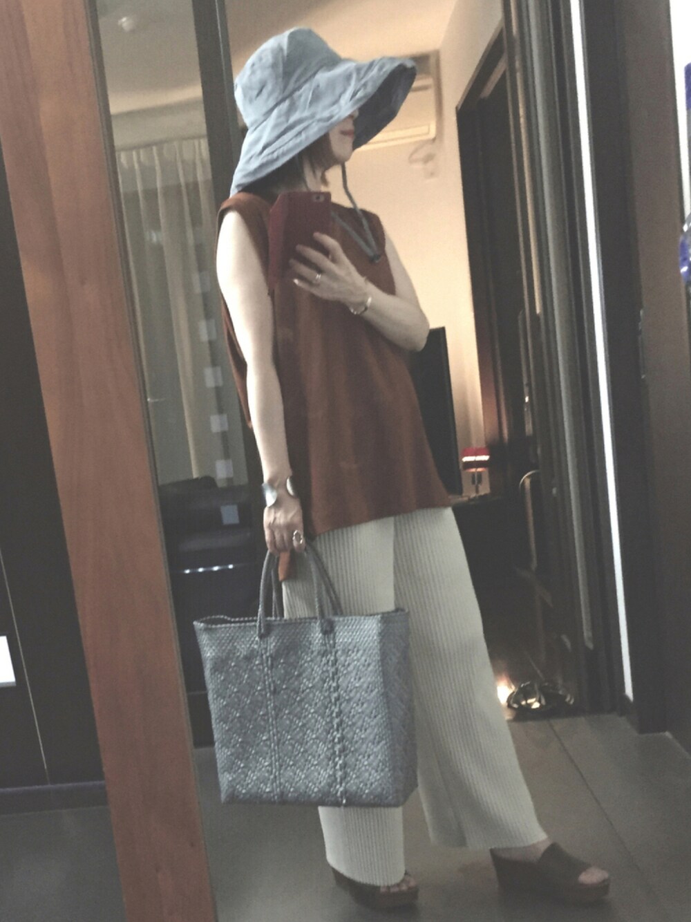 ちょっとコーデが難しいブルーグレーのハットは随分迷って購入しました。 手持ちの服はベージュやブラウンが多いから、本当はオフホワイトにしたほうが良かったけどどうしてもこの色が欲しくて🌟 とりあえず、グレーのカゴバッグと色をリンクさせて、無理矢理UNIQLOマメのブラウンのカットソーを合わせて、ホワイトベージュのリブパンツで中和させてみた挑戦コーデです😅 このコーデ、ありですか?🙄 いいね、お気に入り、フォルダイン、フォローしてくださる皆様にとても感謝しています!ありがとうございます!😊🙇♀️🙇♀️🙇♀️🙇♀️🙇♀️✨