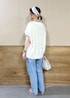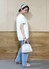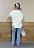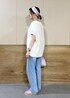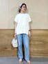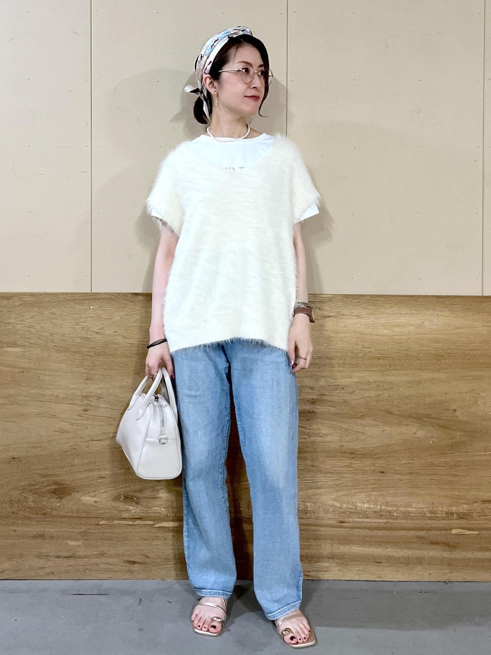 ほわほわのシャギーニットベストをTシャツとデニムに合わせた、カジュアルコーデです☺︎ ヘアアレンジでスカーフを使ったのがコーデのポイントです♪