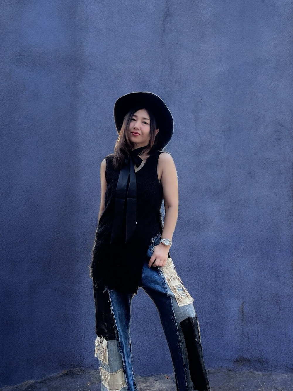 古着屋探訪の際 同じ店で5〜6着 着たんですが これは買わないだろうと、、、(パンツね) 基本的にクラッシュ系のアイテムは 買わないです だいたい本人があちこち痛んでるのに 服でもクラッシュすると バランスが悪くなる気がしてたんですよね 一応 自分 頭でっかちなんで (不器用なんで、、ダンダダンなのか、、🤣) サイズもメンズのとこに あっただけあり 大きいしなぁと クセが強いわりにはきやすい、、、 暫く考えたんですが やっぱり気になって買っちゃいました〜 パッチワークぽい感じが 好きなポイントかも✨ 綺麗目に合わせたいので 他は黒でシックな感じにしてみましたぁ🎵 いつも見ていただきありがとうですぅ✨✨✨