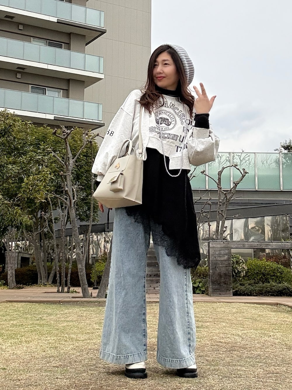 駅で待ち合わせ 出かける前は足元が赤のスピードキャットにするかと思っていたら(4枚目)寒くてブーツに変更 ダウンまで着るしまつ 風がやたらと強くて 当惑する2枚目🌪️ レイヤードしたトップスの丈が短過ぎて気になるところ バランスって大事よね😂 この時期は出かける時の乗り物によっても かなり服装が違うので 夏場や冬場と違って 選ぶのに時間を要しますね⏳ ZARAのレース付きタイプは 半袖 スリップドレス状 この日着てた長袖と3タイプ買いましたが 半袖が1番役に立つ感じで ヨレてきたら 同じやつ買いたいくらい着てますね〜 いつも見ていただきありがとうです♪