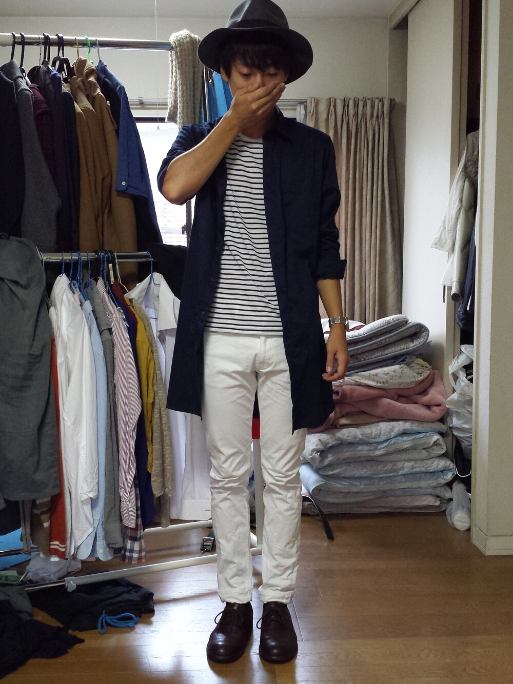 チェスターシャツ(HARE) パンツ(HARE) プレーントゥーシューズ( green label relaxing) ハット(HARE) 少し今日は寒いのでロング丈の物を。 プラス白パンツで夏らしさも残してみました\(^^)/ 学校行ってきます!