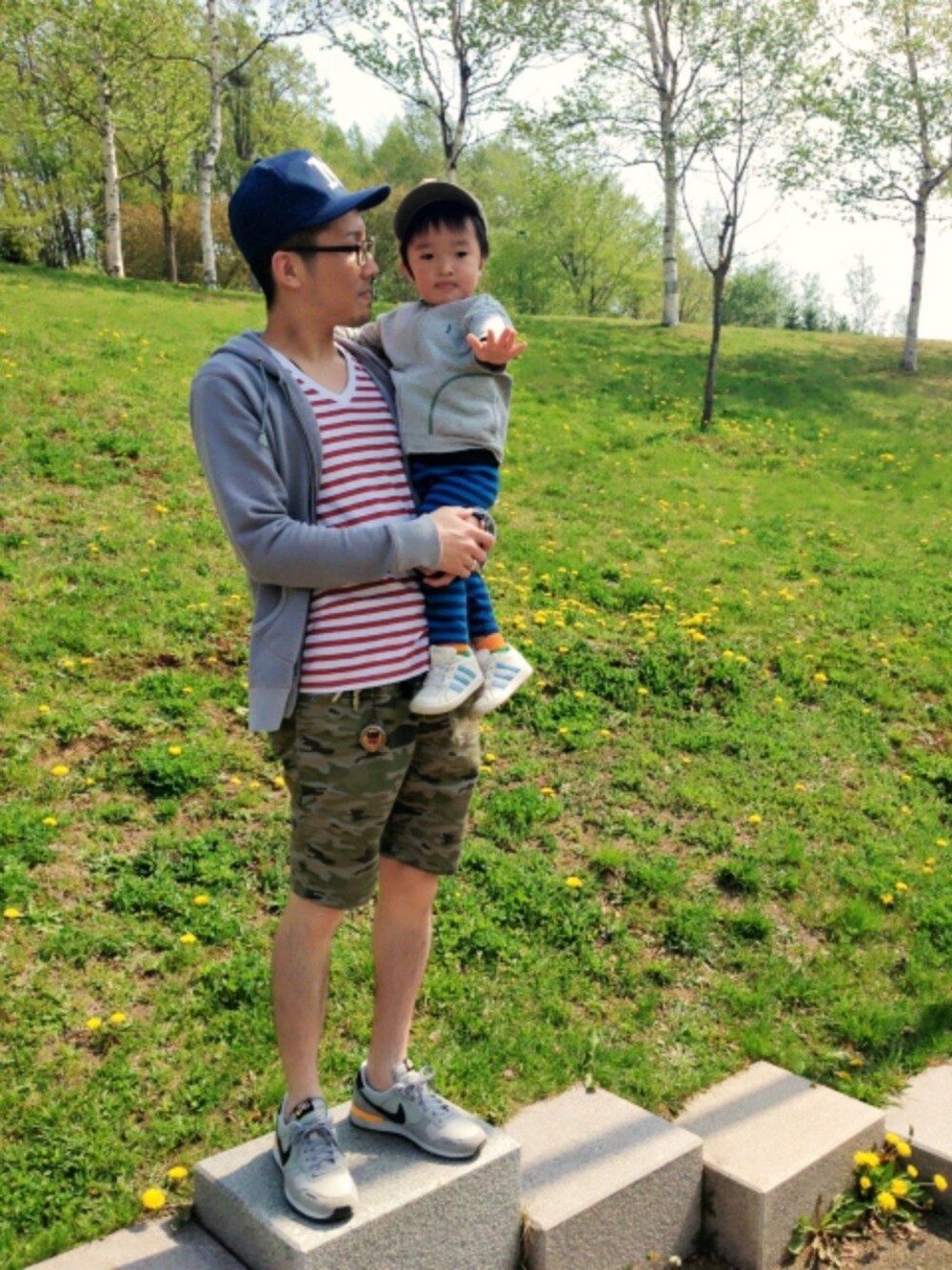 気温23℃(^o^)札幌ではギリギリショーツ日和でした☆ 休日、息子と公園‼