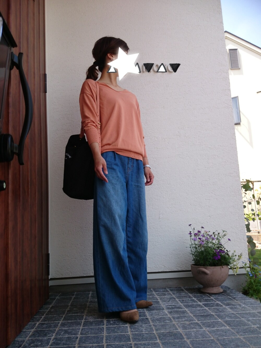 オレンジニットは首のうしろがゆるっとしててお気に入り◡♩ ワイドパンツは万能ですね♡ᵎᵎᵎ