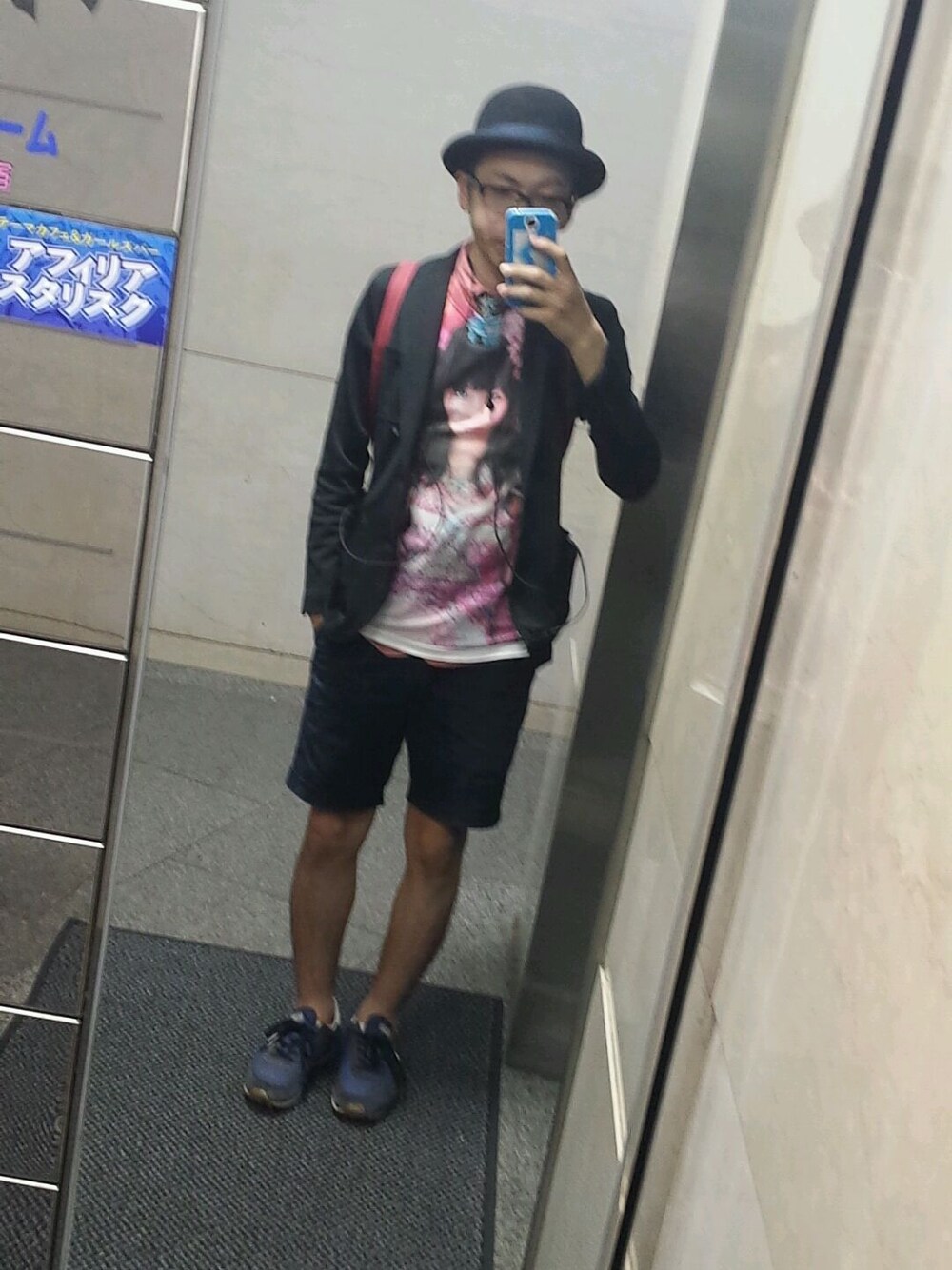 ハット:CA4LA ジャケット:FRED PERRY インナー:大森靖子×蜷川実花Tシャツ(大森靖子公式グッズ) シャツ: COMME des GARSONS JUNYA WATANABE MAN ネクタイ:TOPMAN ショーツ:SHIPS シューズ:FRED PERRY
