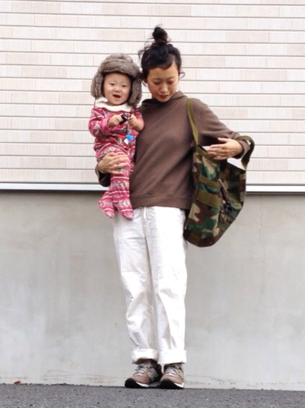 ニットパーカーは首周りがデザイン的で気に入っております✨ 首元をスッキリさせたいのでゆるお団子です◎ 小僧は帽子大きいそうでジャストです!笑