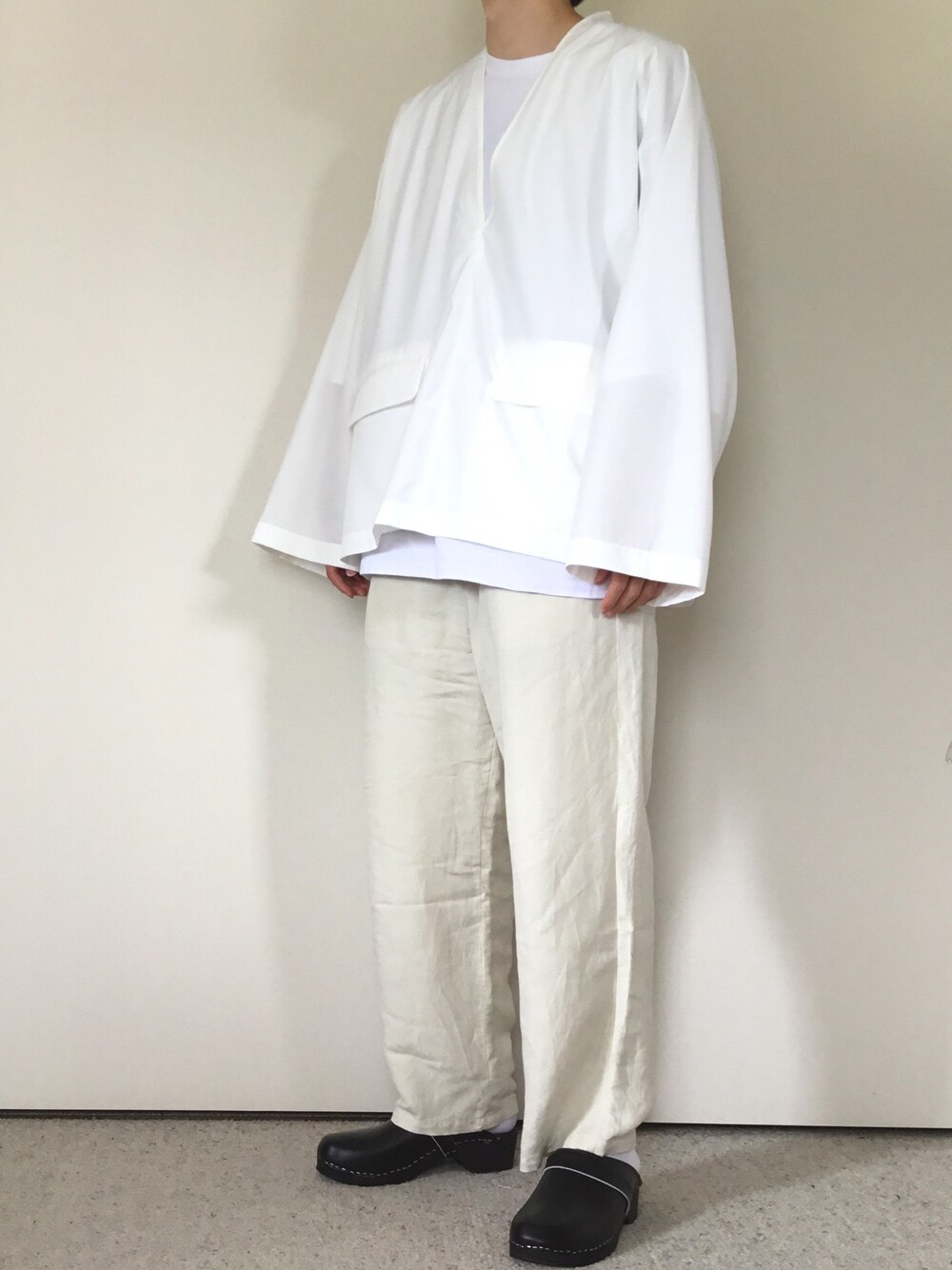 着用コーデ:129件ご覧くださり、ありがとうございます! 今の季節にちょうどいい素材感の オールホワイトコーデです✊ 和テイストで縁側に居たくなります笑
