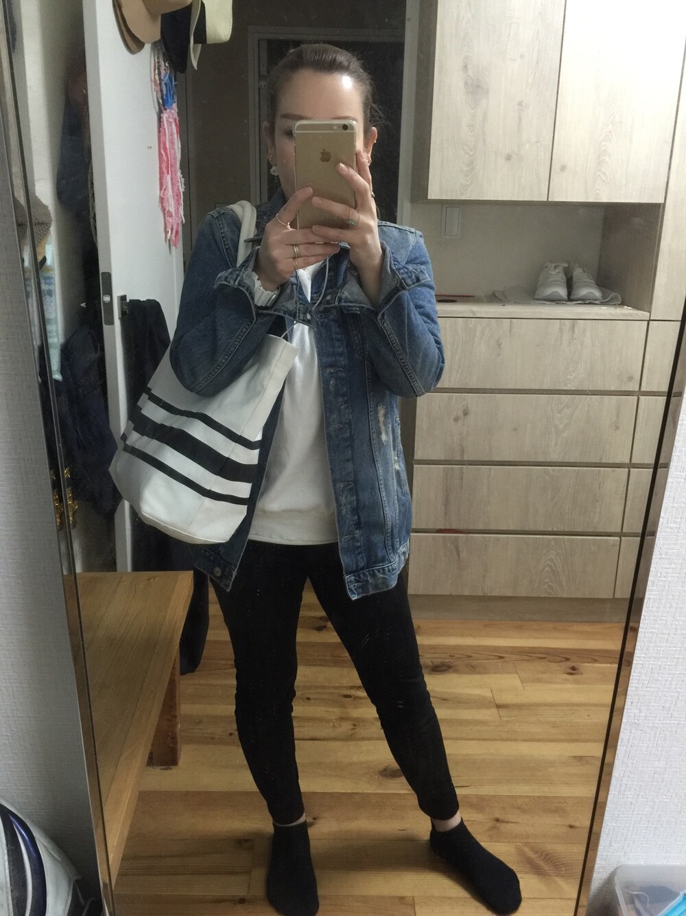 ジージャンが少し長いけど、気にせず着るw 今日寒いっ💦GUの優秀なババシャツきた🤗