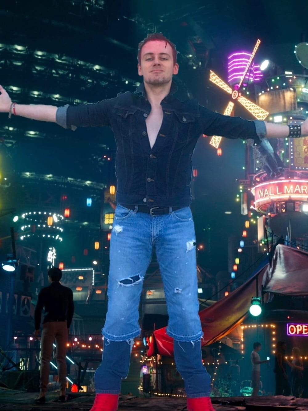 よおおおおし 待ってろ ティファああ! ここ最近一番にもえているのは何かというと、ずばり、 ファイナルファンタジー VII のリメイク 🔥 大人気脇キャラ、ジョニーへのリスペクトコーデ 実は革ジャンを着てるけど、青のがいま持ってないので素材より色を優先。 ボタンは流石に下半は閉めた。見せるお腹じゃなくて申し訳ない🙇♂️ でも裸の上にジージャンって案外気持ちいい!暖かい今日でも、風通しがいいから涼しい! アクセサリーは自分なりに忠誠に再現してみた。 パンツは実は三層まであり、ターコイズっぽいが間に入るけど、持ってへんのとそれはさすがに分厚くなりすぎるからスキップ💧 髭を剃ってジョニーの子最適な顎髭に合わせたし、髪も赤に染めた。 在宅勤務は服はともかく髪の色も自由やな✨ ☆☆☆☆☆ コーデのポイント: ・顎髭は縦3本線 ・裸の上にジージャン ・デニムパンツ2着のレイヤード ☆☆☆☆☆ 今日のBGM: „忍びの末裔“ by 植松伸夫 ☆☆☆☆☆ イイね、セーブ、フォロー、コメントなど、いつもありがとうございます。今後もよろしくお願いします。