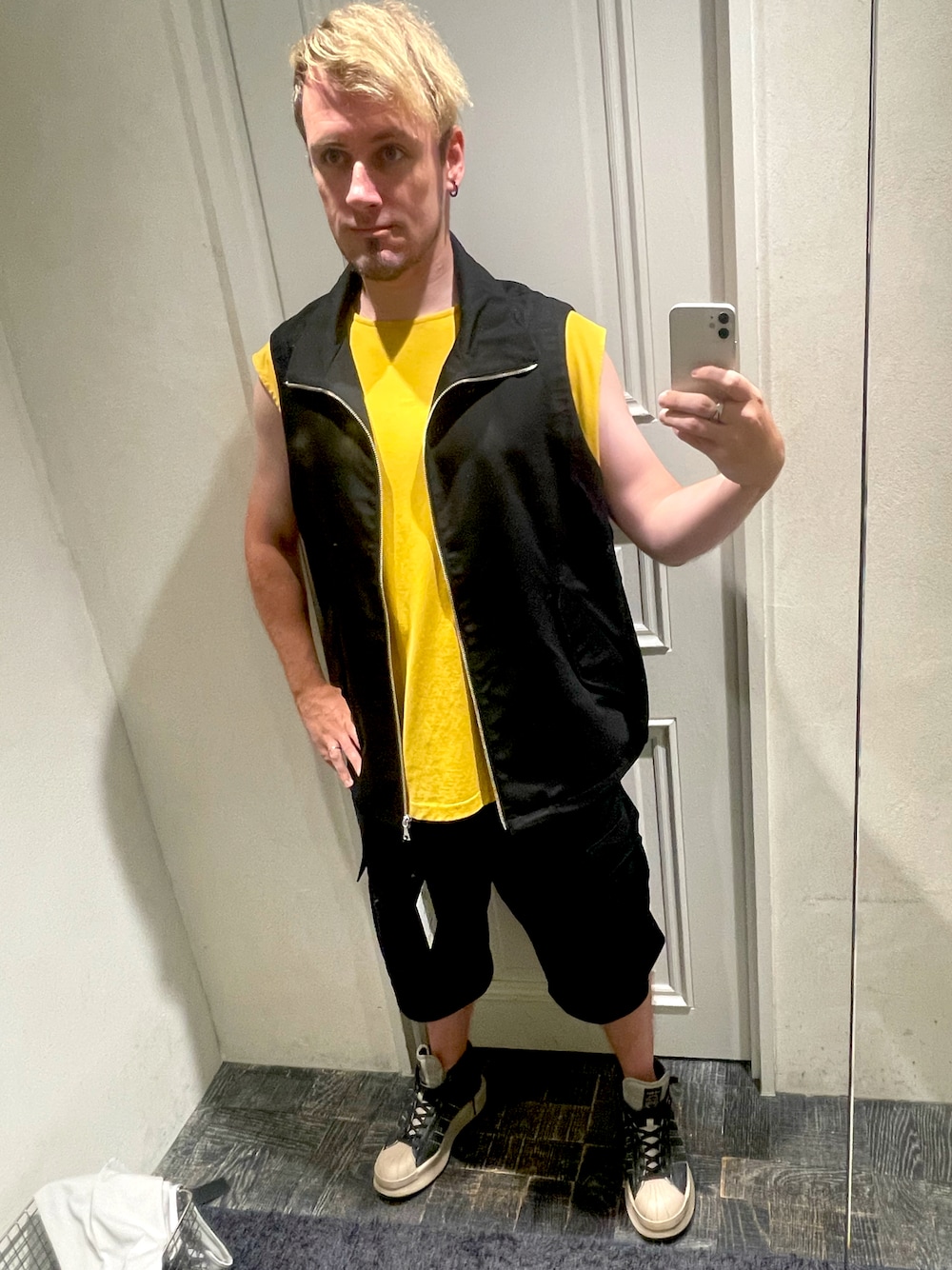 グッド モーニング エブリバディ ☀️ 更衣室からこんにちは。 HAREにハマり始めた瞬間のコーデ。 だって、理想のノースリーブだもん! 形、色合い、シルエット、素材。。。 そして同じく理想のベスト。 形、色合い、シルエット、素材、ディテール。。。 コーデとして無限の可能性が広まった。 ハブ ア グッド デイ 👋 ☆☆☆☆☆ ☆☆☆☆☆ コーデのポイント: ・イエロー×ブラック ・ノースリーブ×ベスト ・厚底スニーカー ☆☆☆☆☆ ☆☆☆☆☆ 今日のBGM: „暁の鎮魂歌“ by Linked Horizon ☆☆☆☆☆ ☆☆☆☆☆ 前回のコーデをフォルダーインしてくれた方、サンク ユー ソー マッチ!🙏 ・たっくんさん ・bochukunさん ・ケンちゃん ・Genさん イイね、フォロー、コメントなども、いつもありがとうございます。今後もよろしくお願いします。