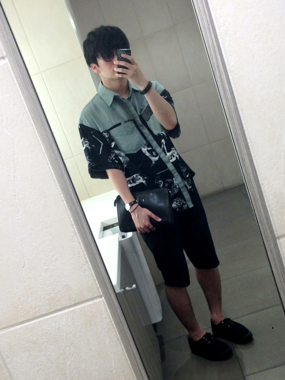 大柄シャツ x ラバーソール 夏らしい大柄シャツ。 ハーフパンツでラフに着つつ、辛めの小物を合わせてました。