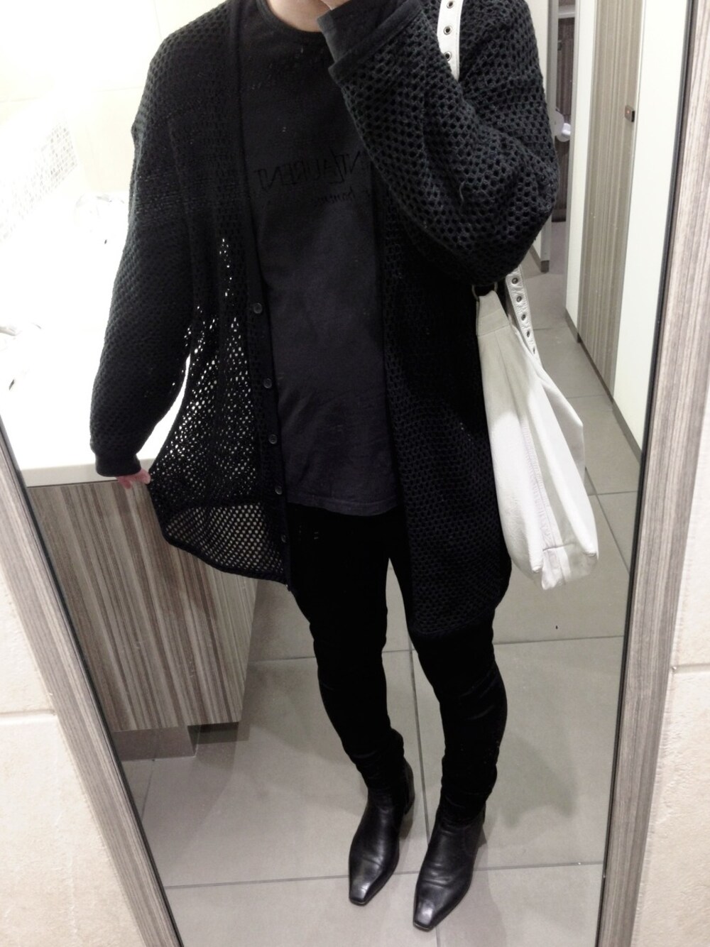 ロンT x メッシュカーディガン 少し肌寒い日には丁度いいです。^^
