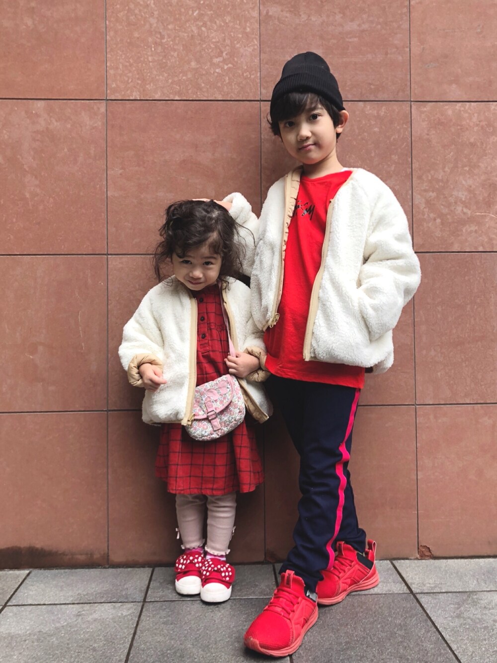 ボアジャケット リンクコーデ。 今年はボアきてるね〜♡ 娘のワンピやジャケット買いに行ったのに、俺にもお揃いで買って! と言われてボアをお揃いで買った笑