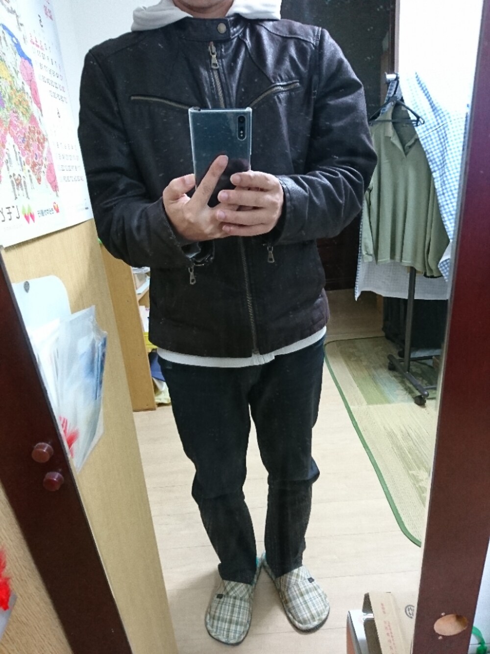 ライダースジャケット2着目!インナーにパーカーを着てみました。割と気に入ってます。