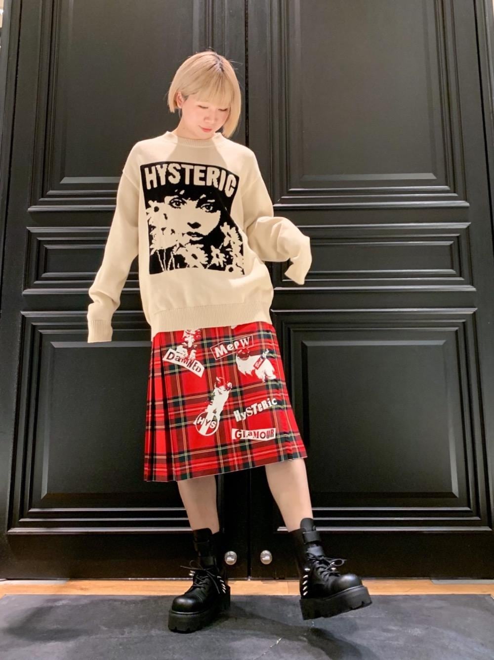 ゆゆ(HYSTERIC GLAMOURルクア大阪店)のスカート「O’NEIL of DUBLIN MEOW MEOW HYSTERICミモレ丈スカート」を使ったコーディネート