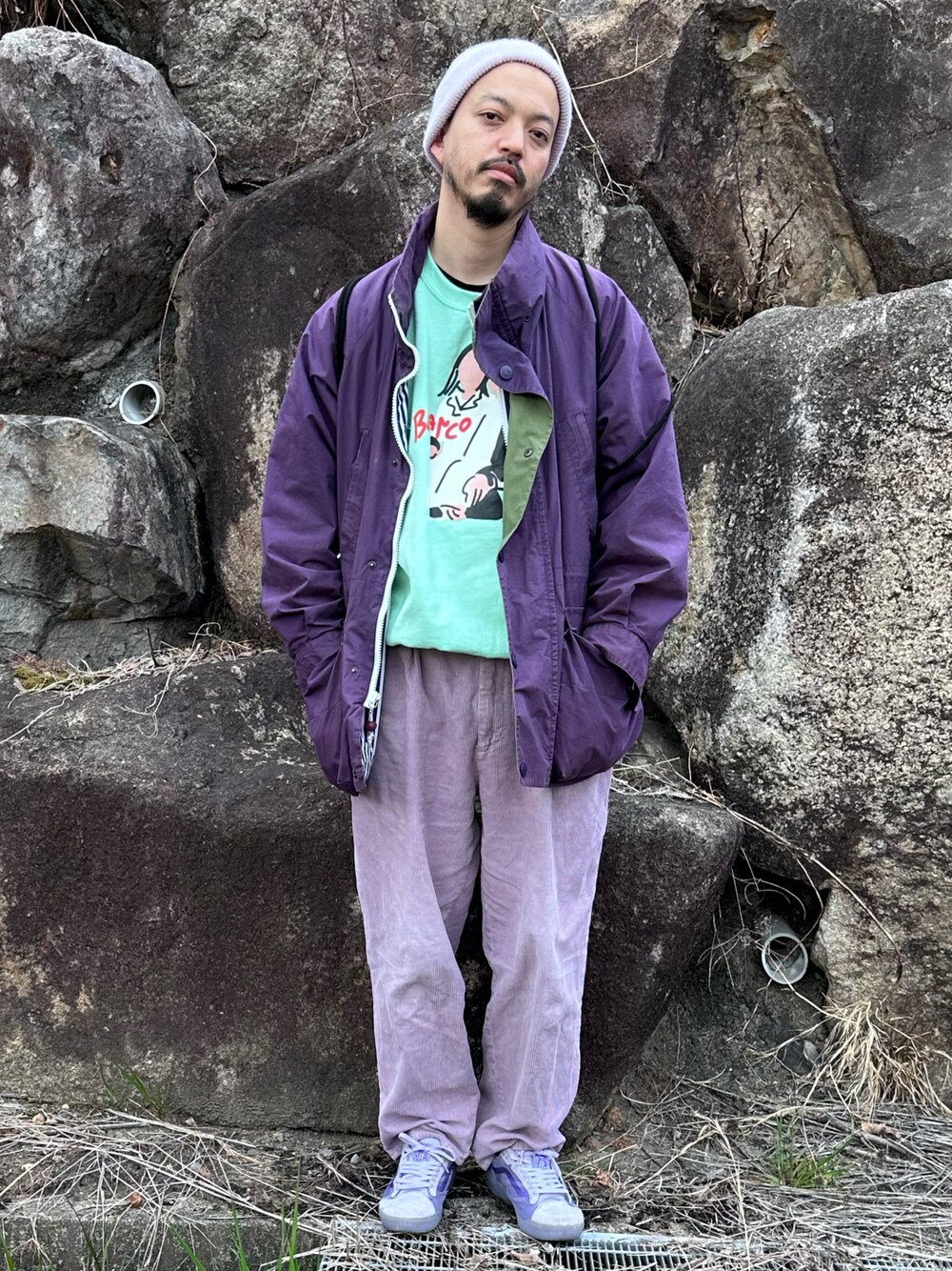 トヲルのニットキャップ/ビーニー「【BLUE STANDARD】クラカーボ2WAYワッチ 静電気抑制素材 長めにも浅くも被る事も可能」を使ったコーディネート