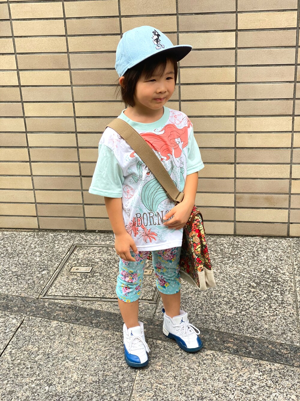 皆さんおはようございます。 いつも❤️お気に入りありがとうございます。 今日のコーデは、、、 #スクールスタイル #バッグ大きめ 登園コーデです。 先日のディズニープリンセスTシャツを使用しリベンジしました。 大きめショルダーバッグはポーターガールの花柄バッグでめちゃ可愛いです。 父の持ち物ですが、妻に「似合わないよ」と言われ暫く使っていなかった一品です。 可愛いですよね? 靴はジョーダン12です。